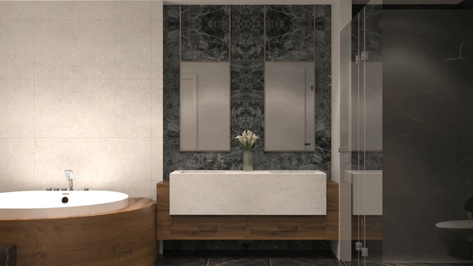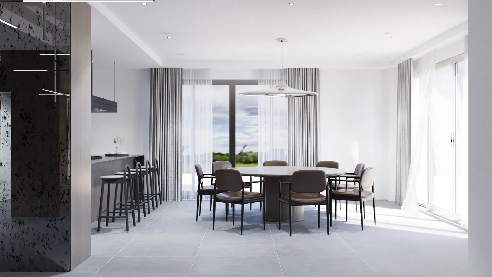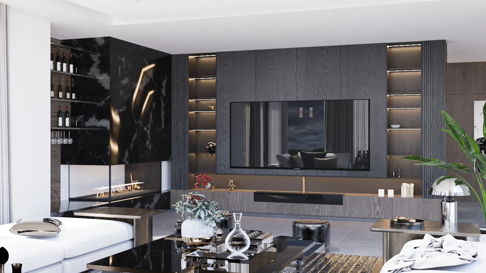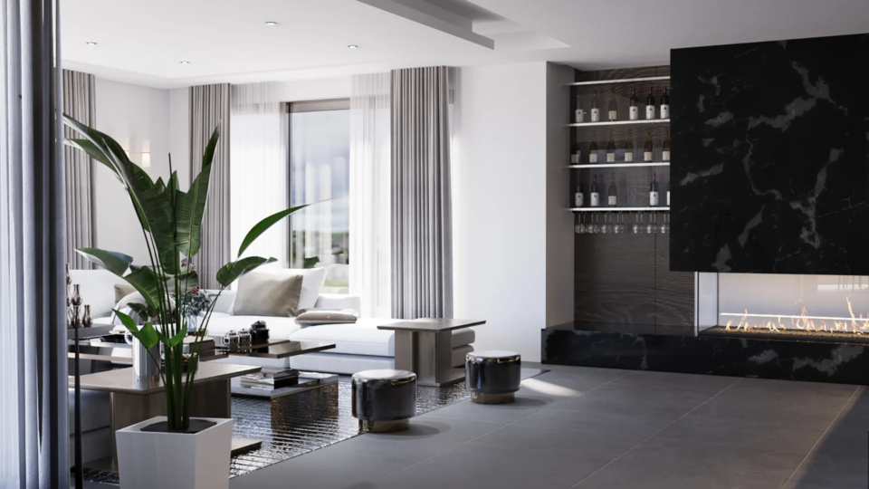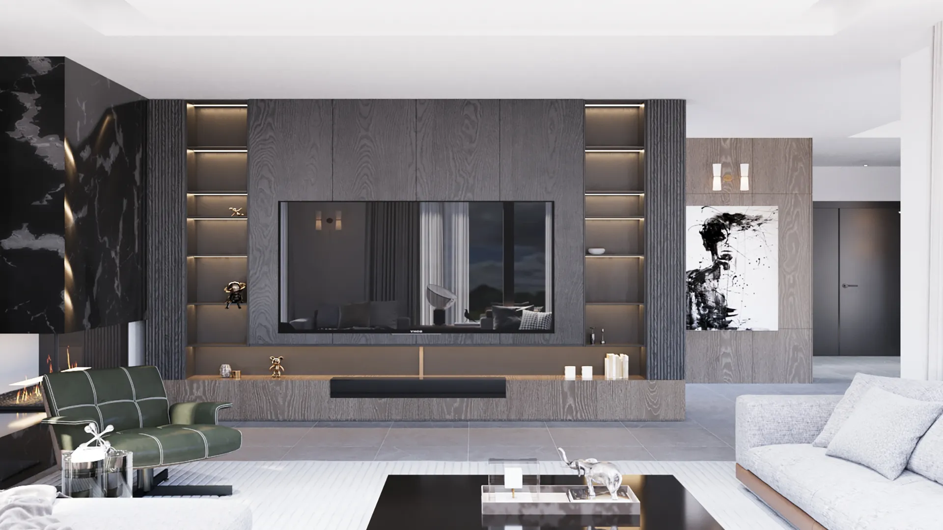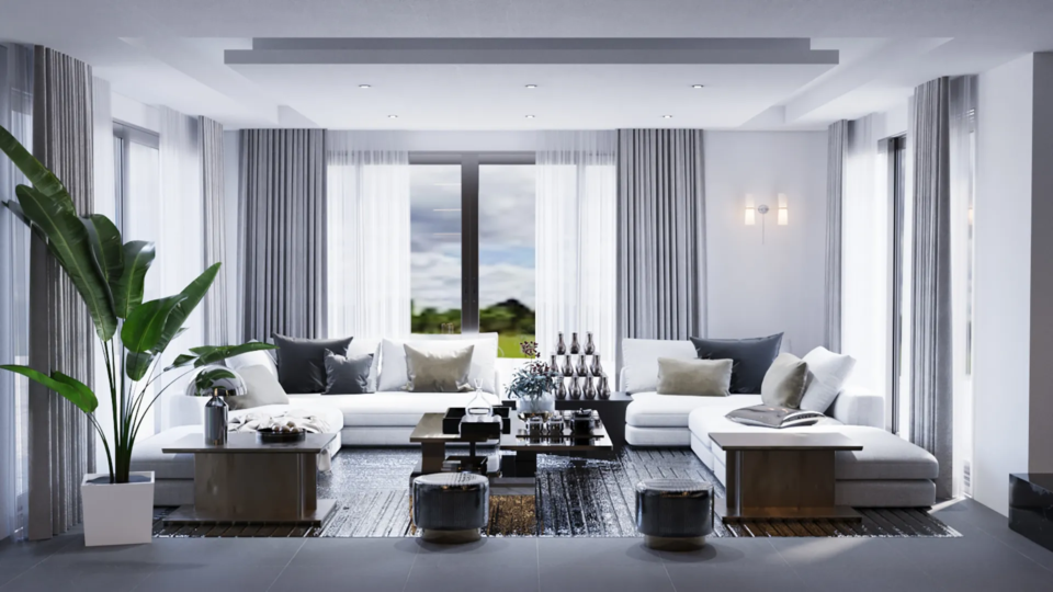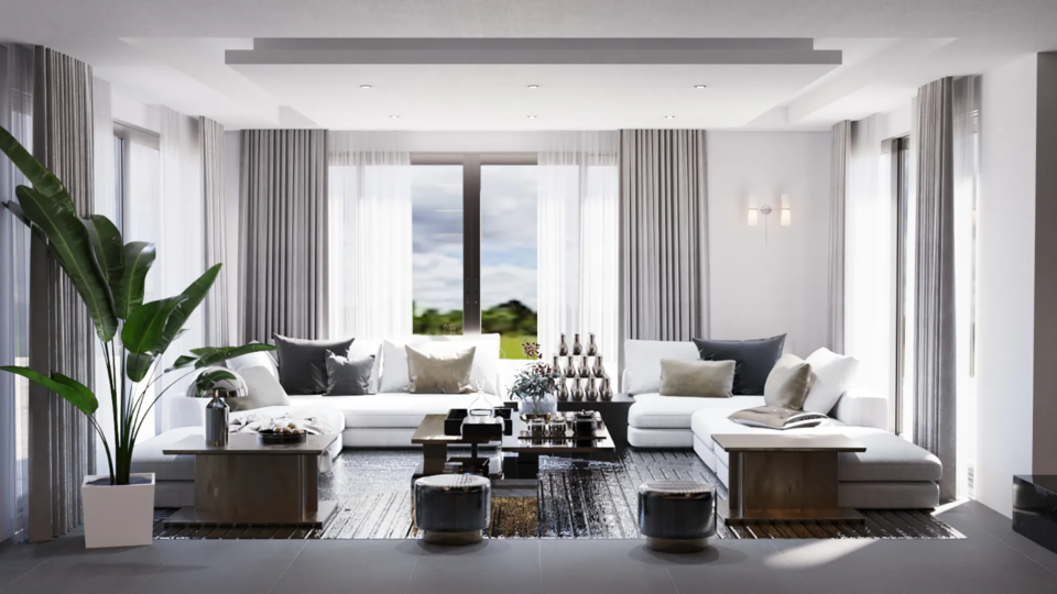 Demirtaş Ailesi için tasarladığımız bu villa projesi, modern yaşamın konforunu ve lüksünü dingin bir huzurla buluşturuyor. Geniş pencerelerden giren doğal ışık, mekanı aydınlatırken, özel tasarım TV ünitesi ve gri tonlarındaki şık koltuk takımıyla oturma alanı, modern bir zarafet sunuyor. Ailenin günlük hayatında ihtiyaç duyduğu fonksiyonelliği ve estetiği birleştiren bu proje, koyu renk ahşap dokular ve modern çizgilerle güçlü bir karakter kazanıyor.