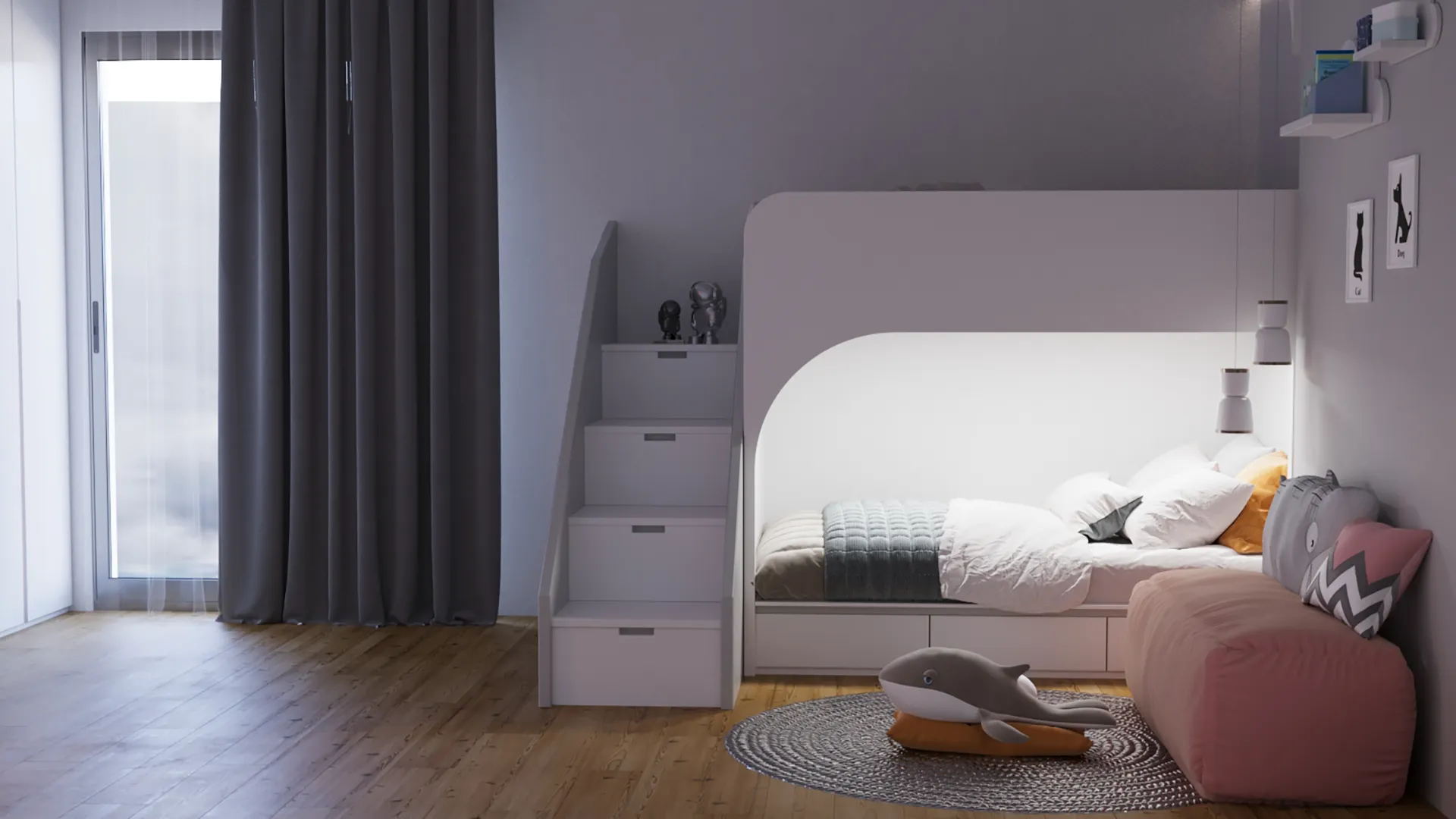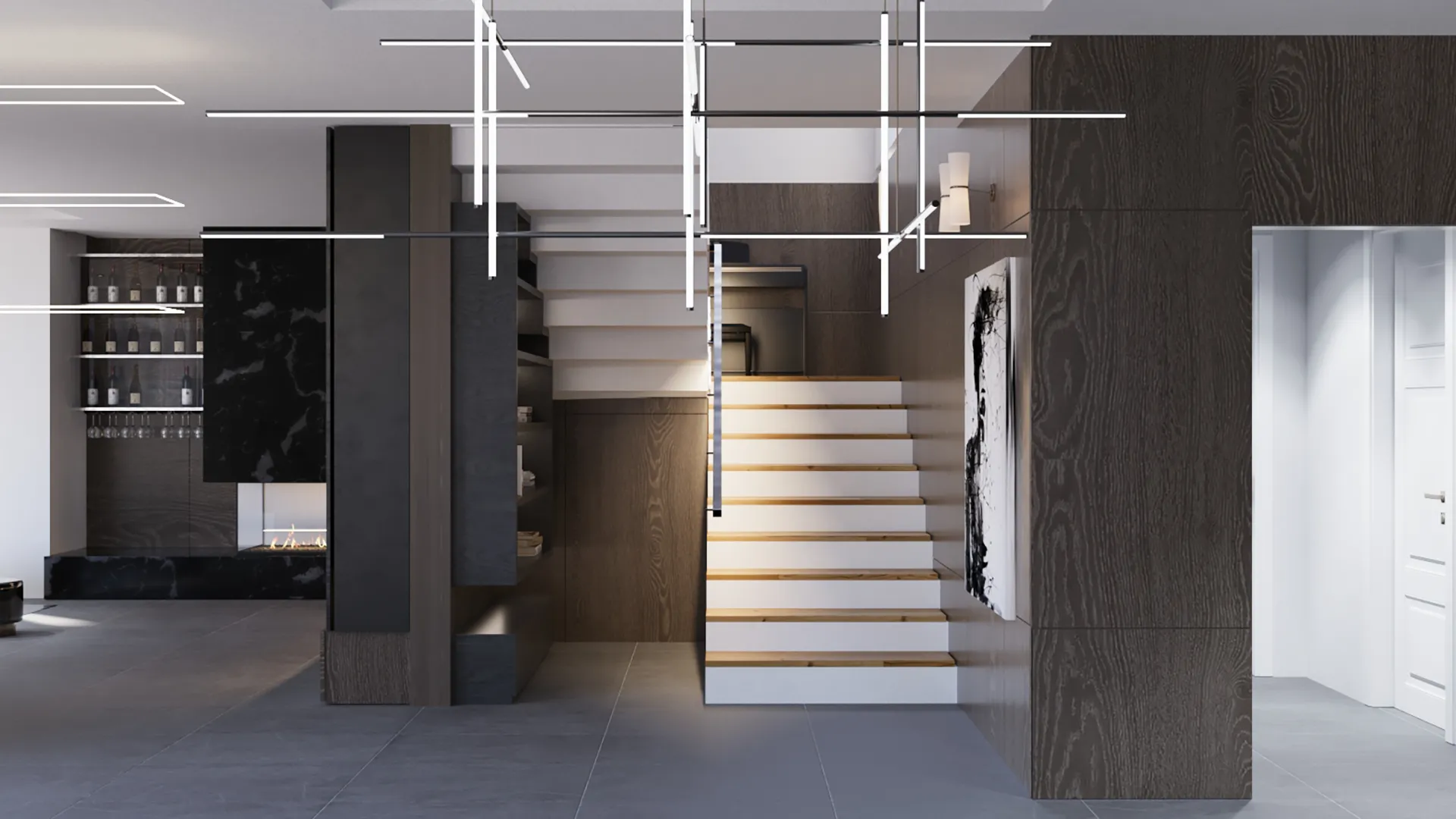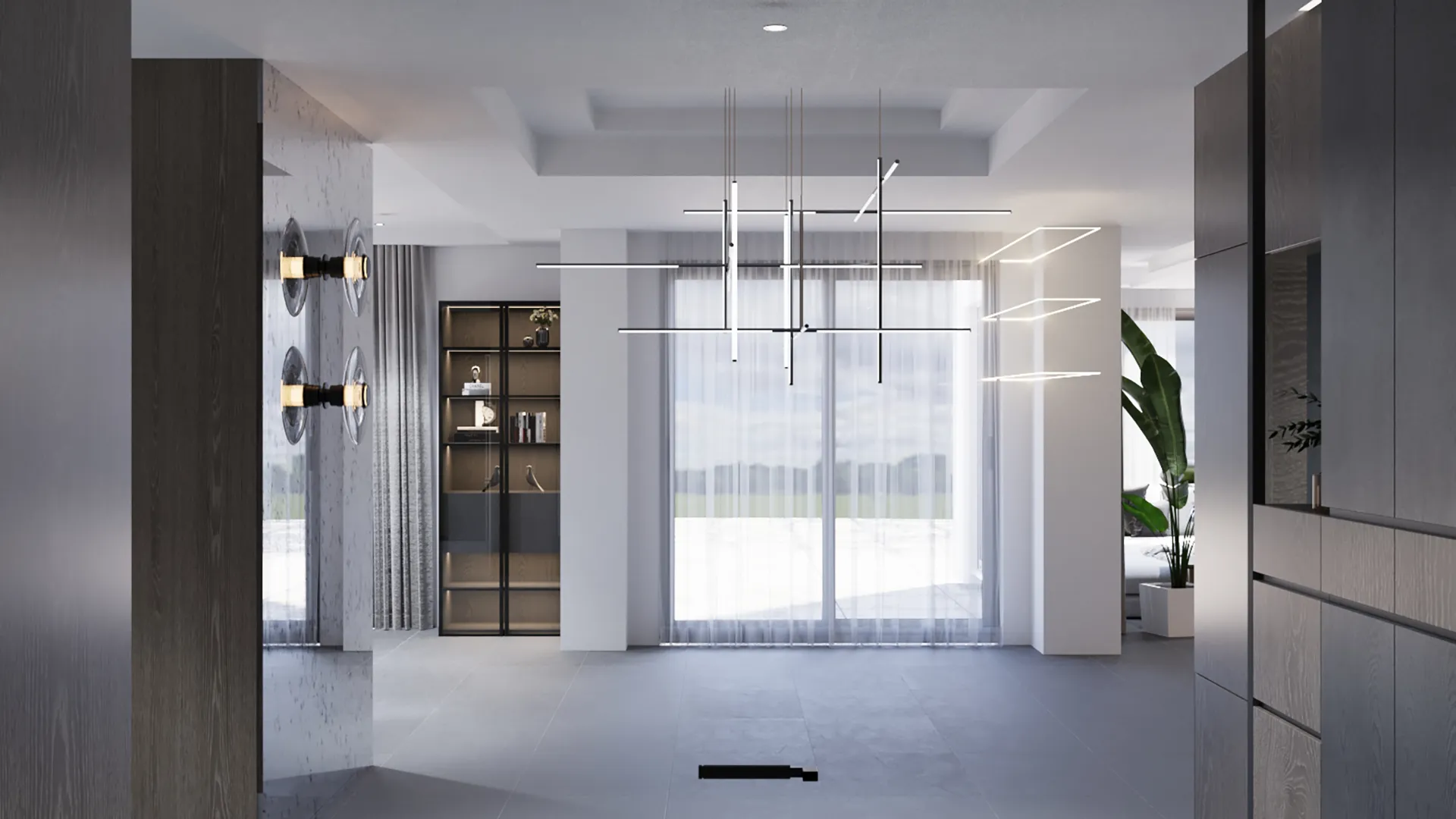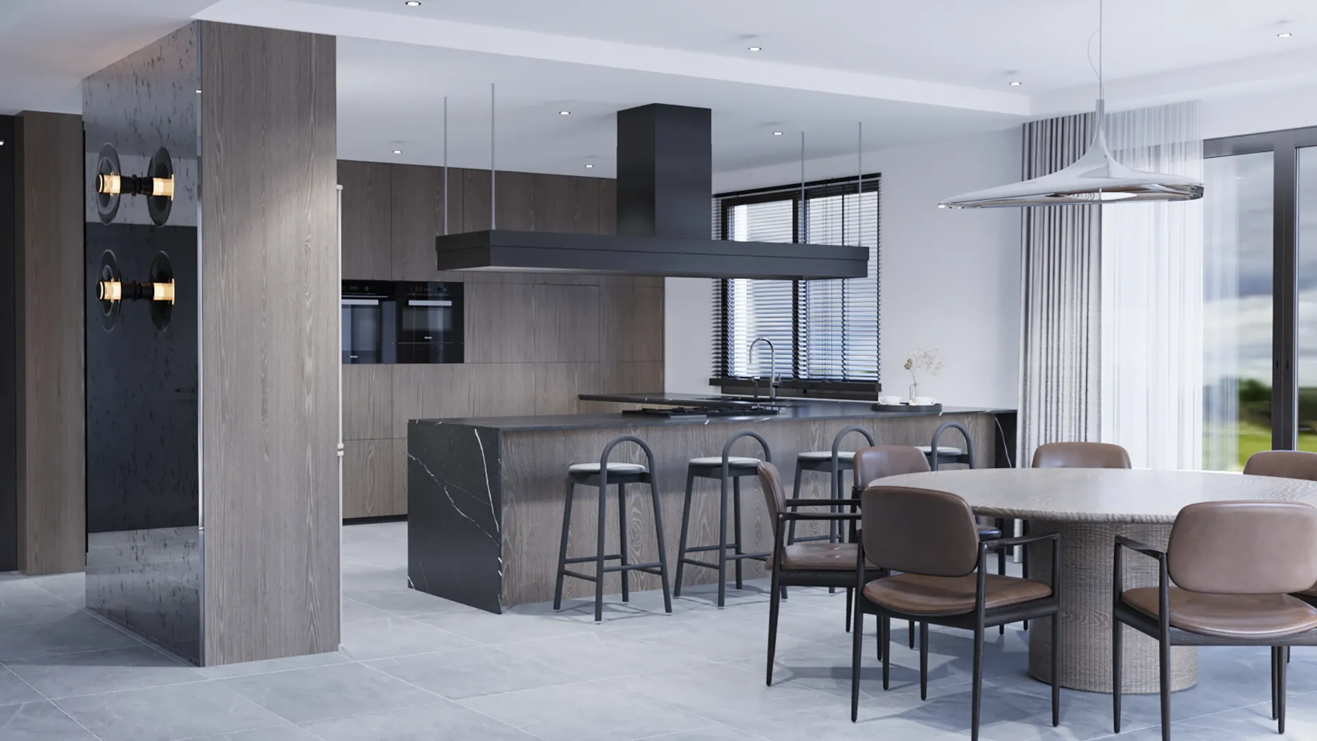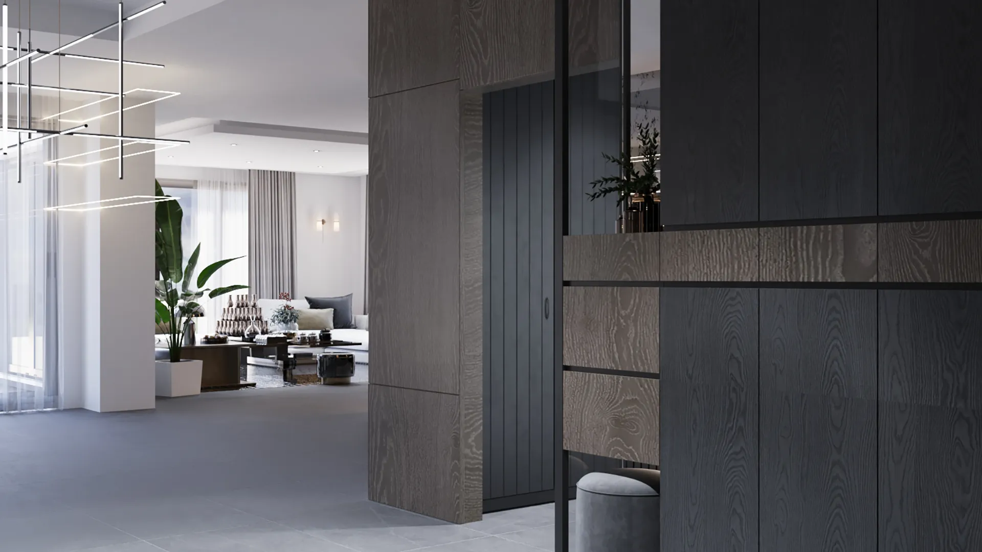 Demirtaş Ailesi için tasarladığımız bu villa projesi, modern yaşamın konforunu ve lüksünü dingin bir huzurla buluşturuyor. Geniş pencerelerden giren doğal ışık, mekanı aydınlatırken, özel tasarım TV ünitesi ve gri tonlarındaki şık koltuk takımıyla oturma alanı, modern bir zarafet sunuyor. Ailenin günlük hayatında ihtiyaç duyduğu fonksiyonelliği ve estetiği birleştiren bu proje, koyu renk ahşap dokular ve modern çizgilerle güçlü bir karakter kazanıyor.
