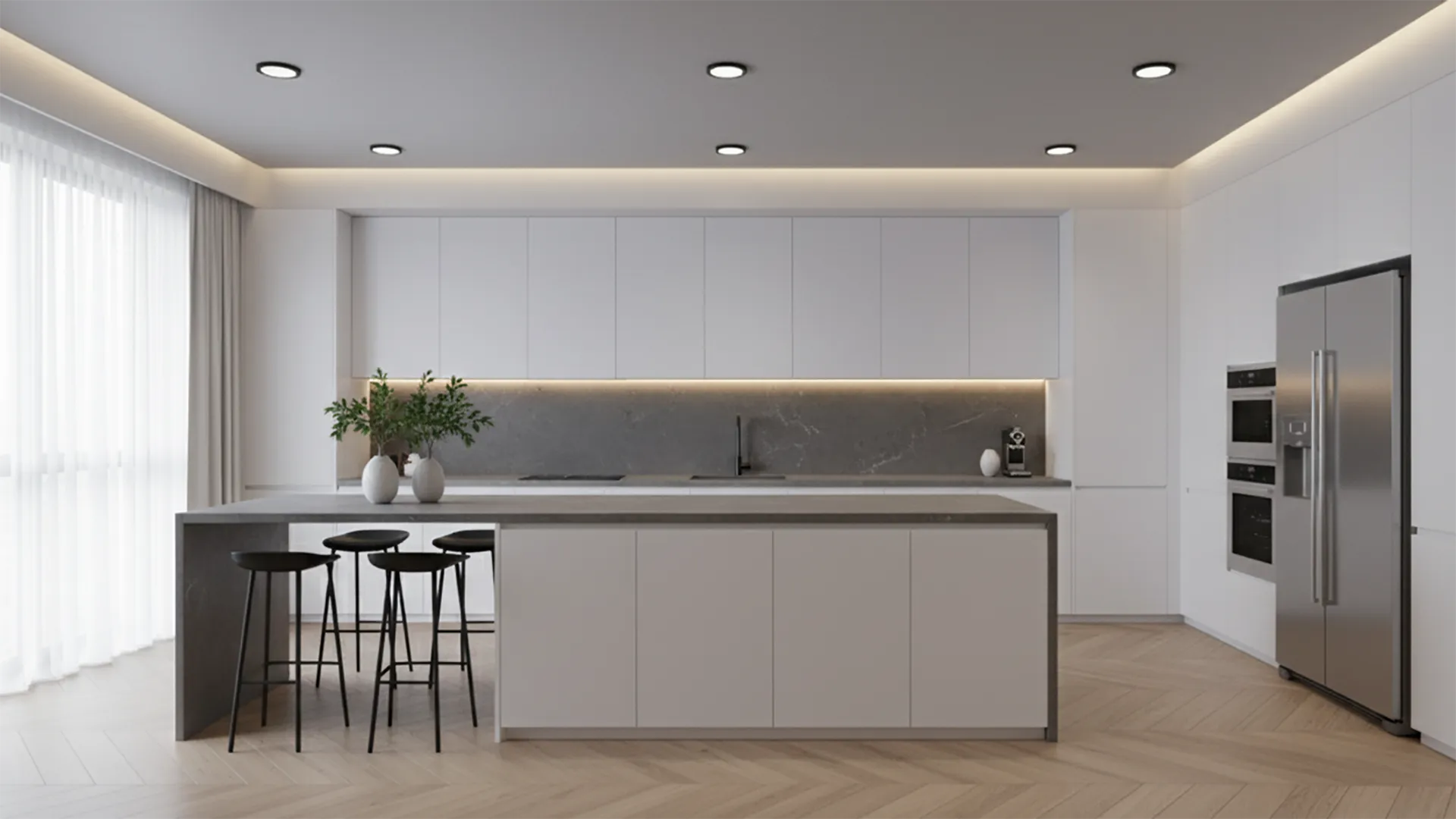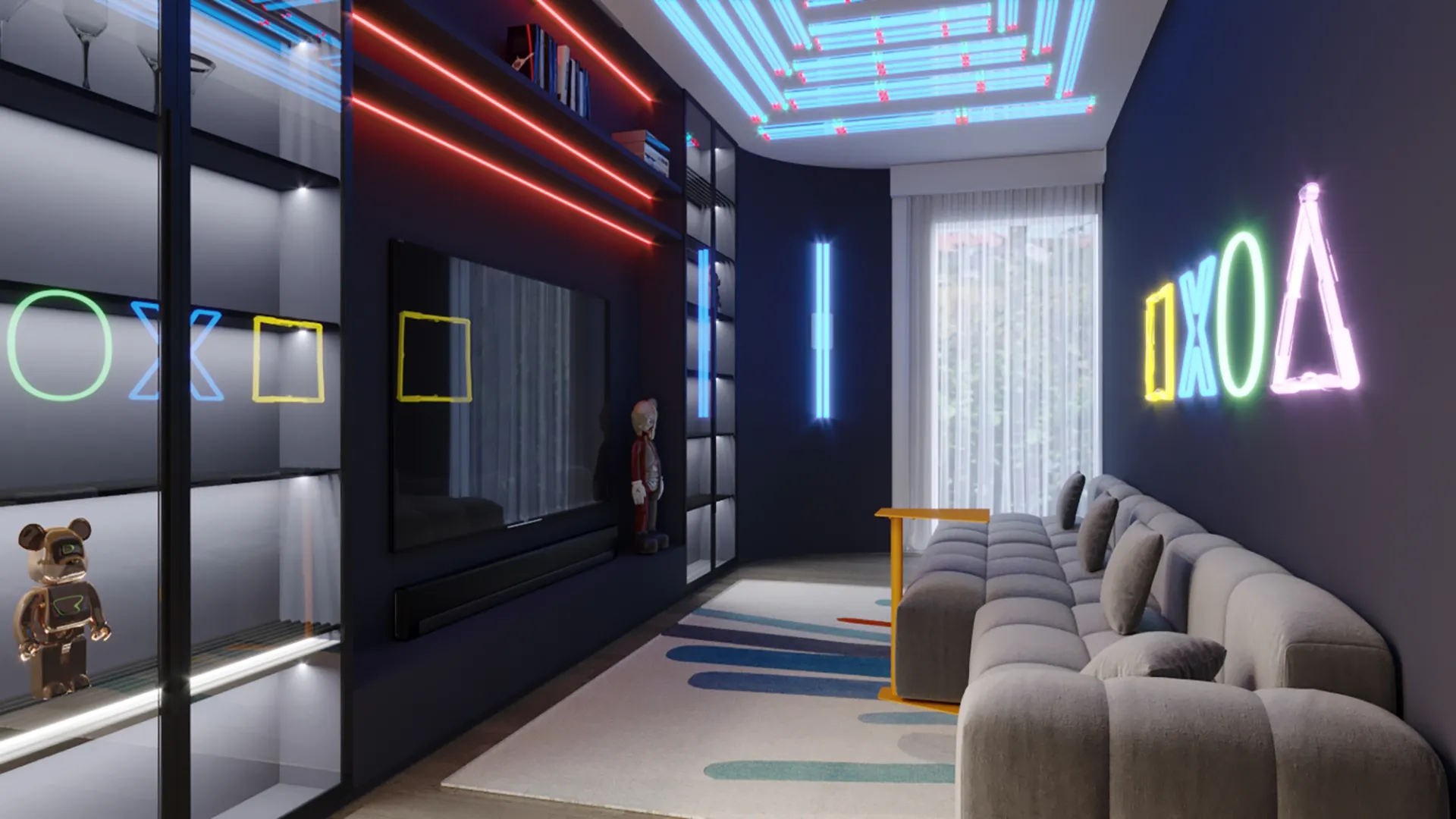 Erhan Bey için özel olarak tasarlanan bu ev, şehirli ve dinamik bir erkeğin tüm ihtiyaçlarına cevap veriyor. Koyu ve sofistike renklerin, mermer ve ahşap gibi doğal dokularla birleştiği bu proje, hem göz alıcı hem de fonksiyonel bir yaşam alanı sunuyor. Şık ve minimalist çalışma ofisi, spor alanı ve oyun odası gibi eğlence detaylarıyla birleşerek, evin sadece bir konut değil, aynı zamanda kişisel zevkleri yansıtan modern bir sığınak olmasını sağlıyor.