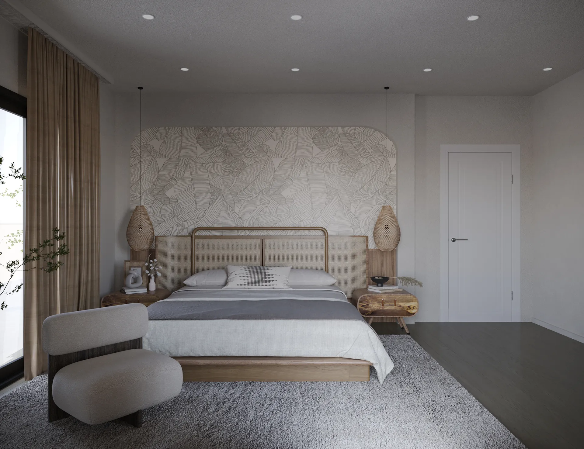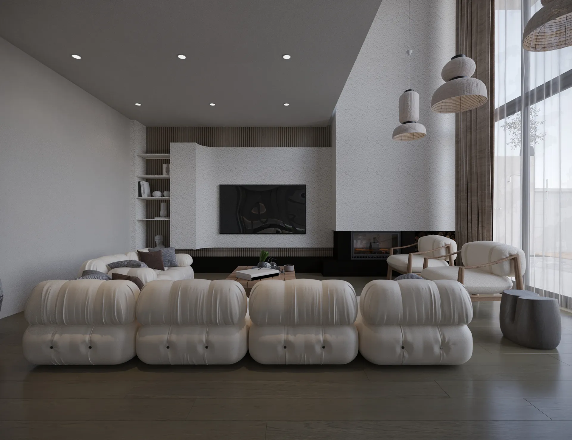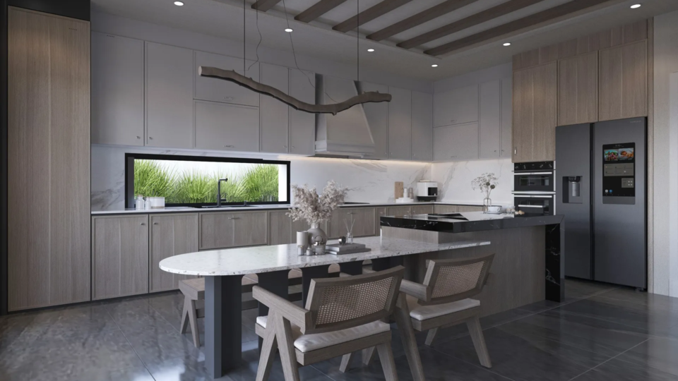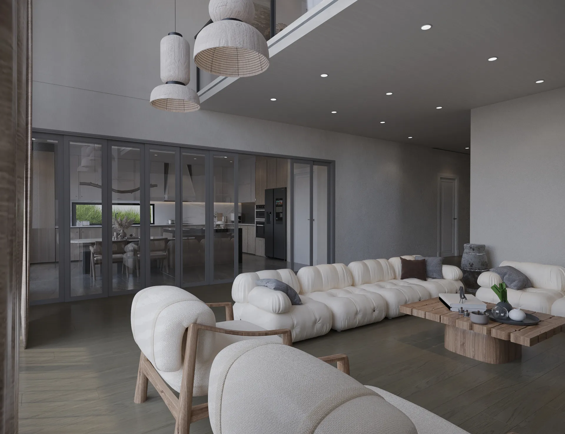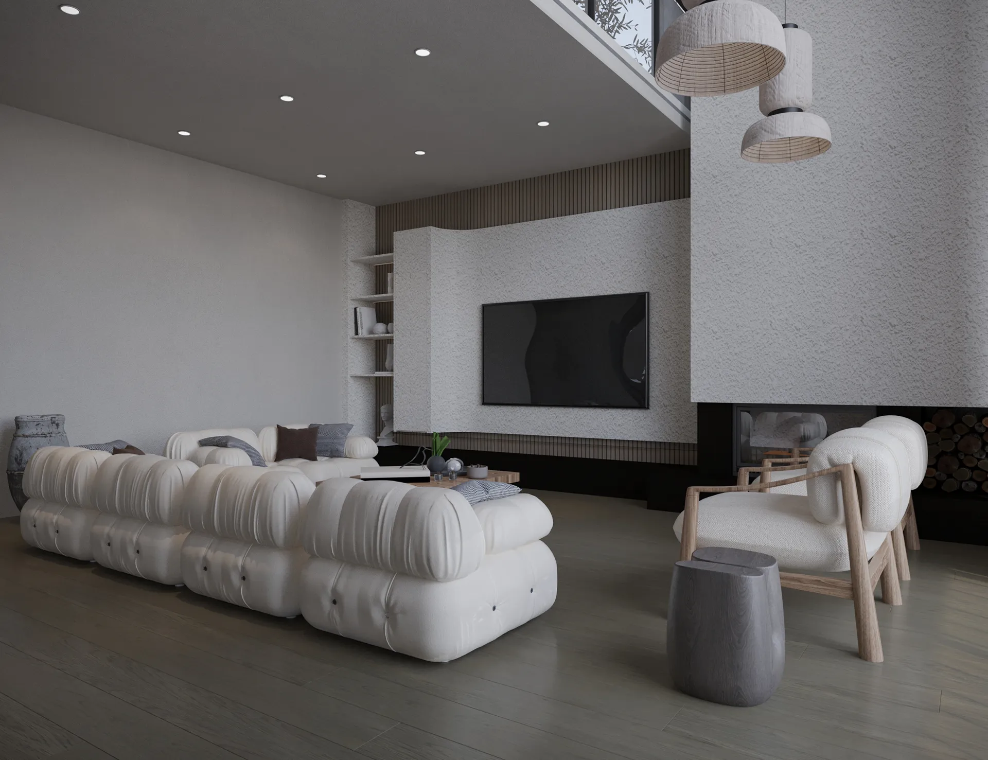 Yıldırımcan ailesi için tasarladığımız bu villada, modern mimarinin net çizgilerini bohem ve doğal tasarımın sıcaklığıyla bir araya getirdik. Yüksek tavanlı, şömineli ferah yaşam alanını, cam galeri boşluğuyla bağlanan daha samimi bir dinlenme katıyla zenginleştirdik. “Japandi” stilinin huzurunu yansıtan, doğal desenli ve rattan detaylı ebeveyn süiti ile cesur adaçayı yeşili ve mermer dokuların öne çıktığı banyolar, bu projeyi ailenin kişisel huzur vahası haline getirdi. Her köşesi özenle düşünülen bu yuvada, Yıldırımcan ailesine mutlulukla dolu anılar biriktirmelerini dileriz.