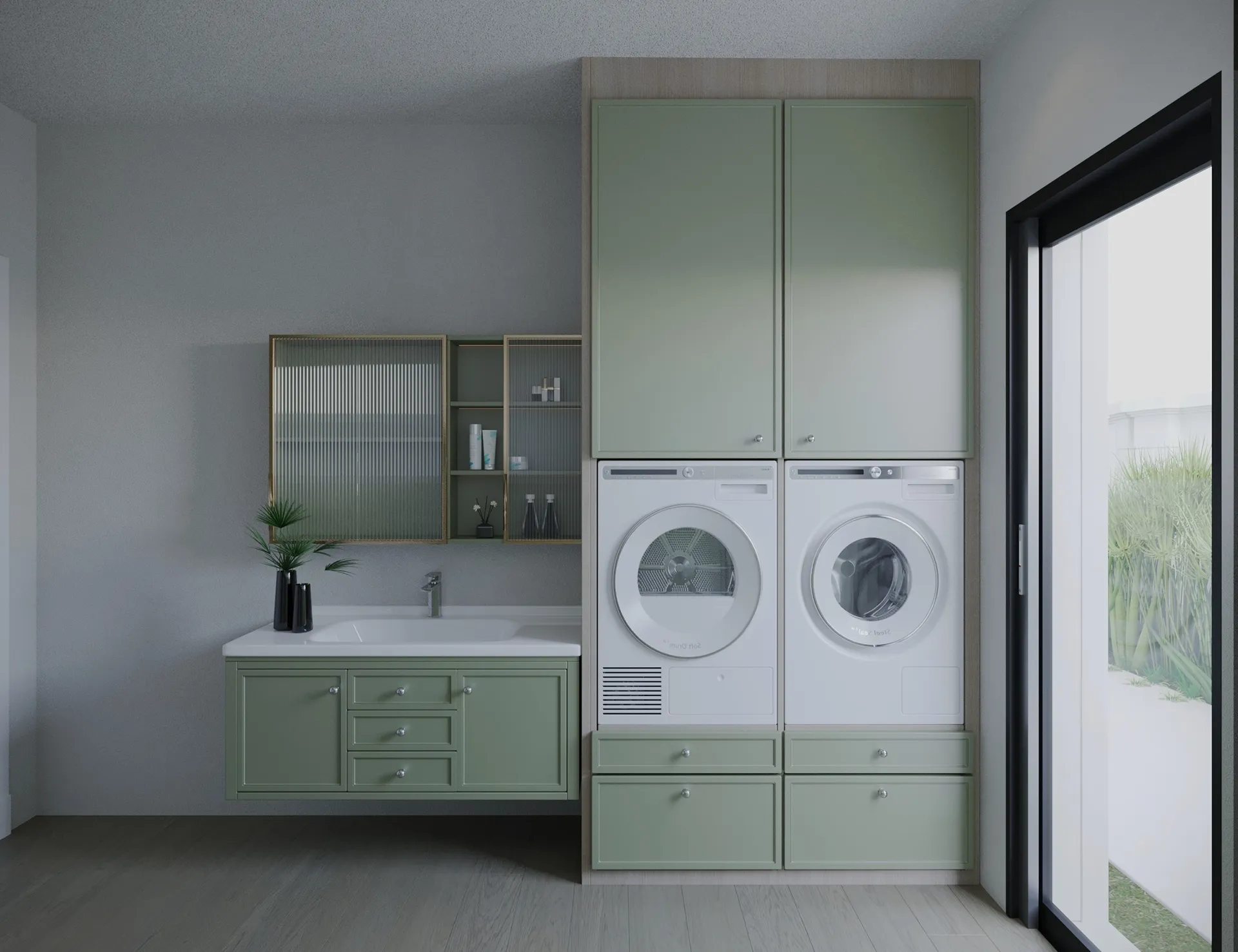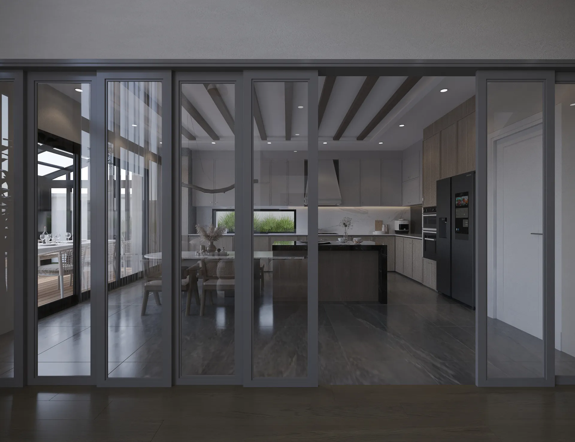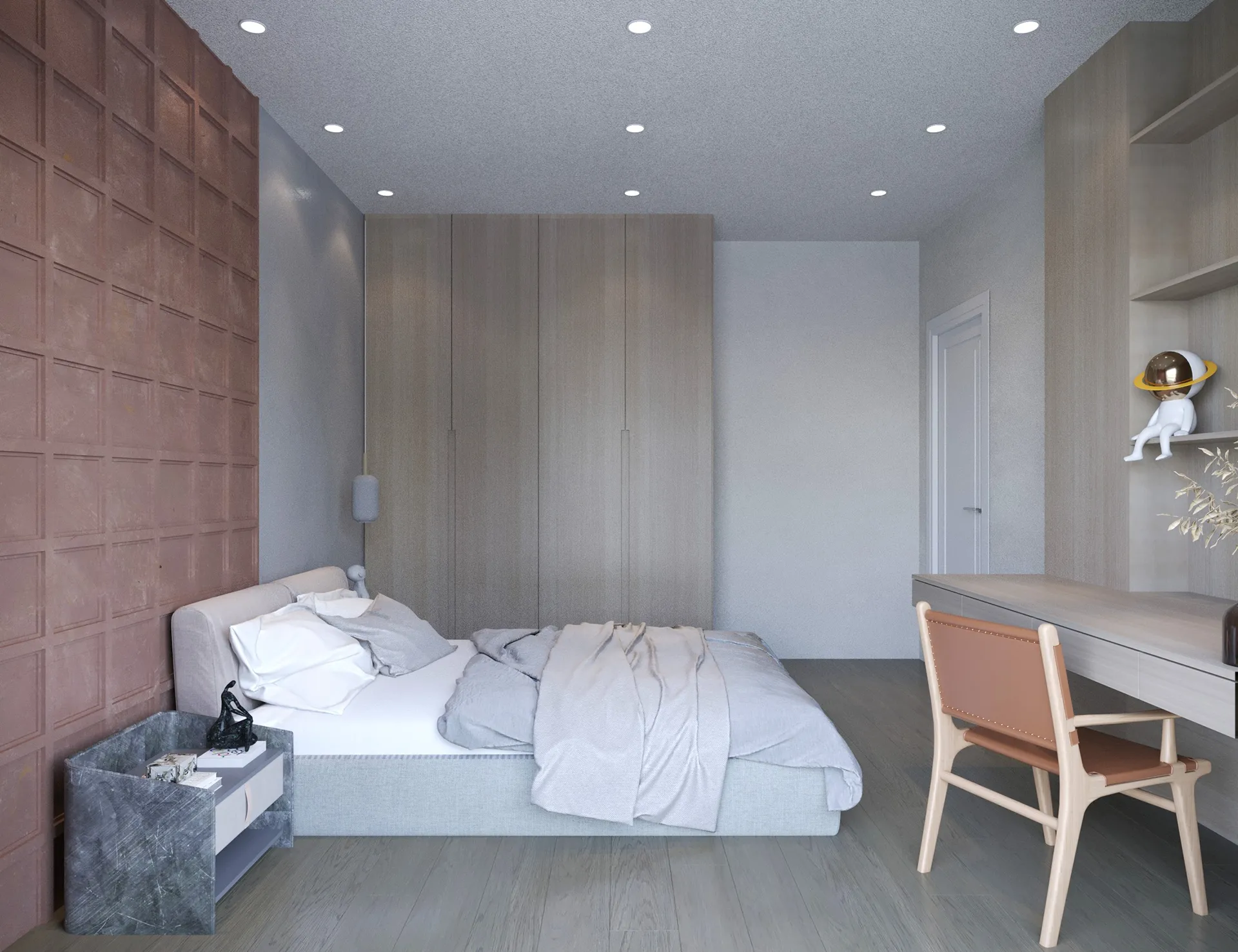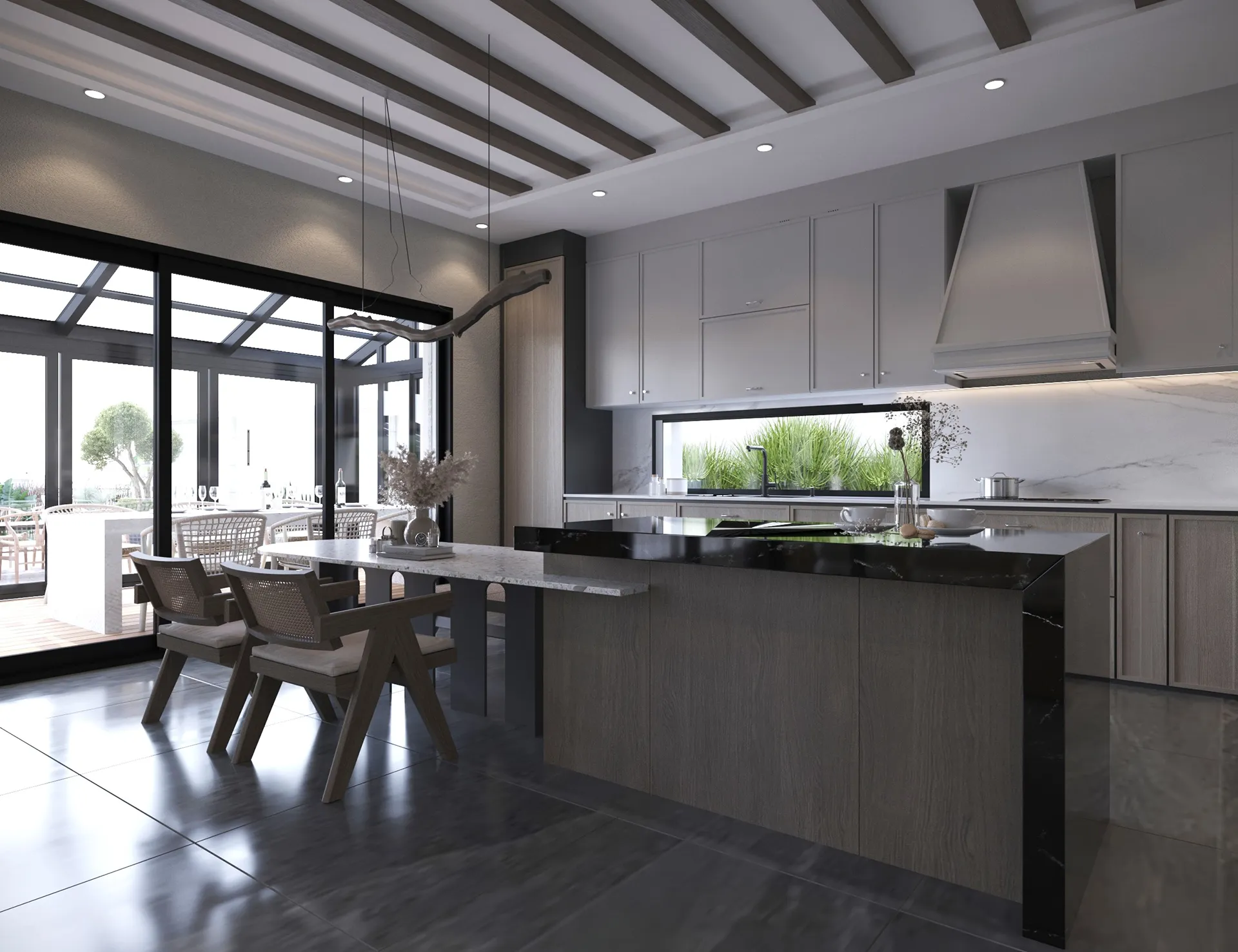 Yıldırımcan ailesi için tasarladığımız bu villada, modern mimarinin net çizgilerini bohem ve doğal tasarımın sıcaklığıyla bir araya getirdik. Yüksek tavanlı, şömineli ferah yaşam alanını, cam galeri boşluğuyla bağlanan daha samimi bir dinlenme katıyla zenginleştirdik. “Japandi” stilinin huzurunu yansıtan, doğal desenli ve rattan detaylı ebeveyn süiti ile cesur adaçayı yeşili ve mermer dokuların öne çıktığı banyolar, bu projeyi ailenin kişisel huzur vahası haline getirdi. Her köşesi özenle düşünülen bu yuvada, Yıldırımcan ailesine mutlulukla dolu anılar biriktirmelerini dileriz.